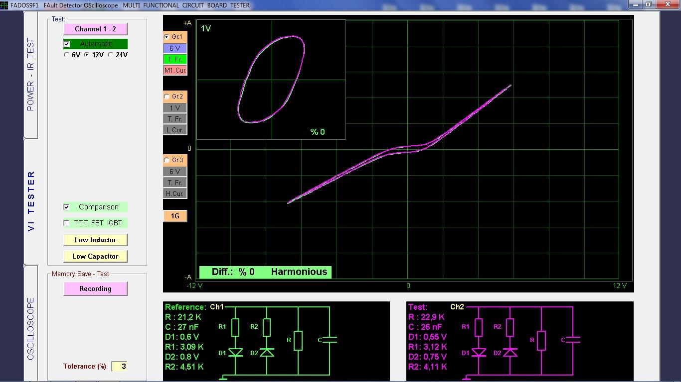 The FADOS device uses a 12-bit ADC and DAC, resulting in high sensitivity. Furthermore, at a 12V test frequency, each graph is obtained with 720 measurements, providing high resolution.